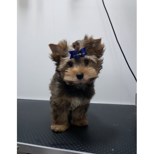 История: Предците на този импозантен представител на "висшето" кучешко общество не били със синя кръв. Напротив, тези пъргави, трудолюбиви и изключително смели кучета били помощници на бедните слоеве от населението при лова на дребен дивеч. И дребните им размери били необходими, за да може при нужда кучето да бъде скрито заедно с плячката в неголяма чанта. По-дребните екземпляри от този тип хората носели в джобовете на връхните си дрехи и били преодолима награда за сръчните пръсти на джебчиите. Сред предците на йоркшира срещаме черно-кафявия английски териер, който послужил за създаването на много породи териери. Там виждаме имената на две вече изчезнали породи: Paisley и Clydesdale Terrier. Тези кучета били сравнително едри за тесните жилища на простолюдието и тоба бил поводът да се създаде миниатюрна порода. По време на първата изложба в Бирмингам през 1860г. съдиите слагали бели ръкавици, за да установят дали представените териери не били боядисани с оловен окис, боя за обувки или някакъв друг оцветител, за да получат характерния за породата цвят на косъма. Породата е утвърдена от британския Кенел клуб през 1886г. и това отваря пътя й към световния изложбен ринг. Първият регистрирн представител на породата се наричал Хадърсфийлд бен, тежал 5.5 кг. и имал високи оценки от 74 изложби, като наред с това успешно участвал в състезания за лов на плъхове.