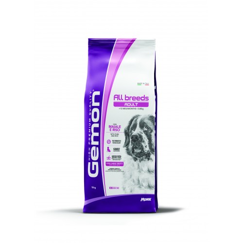 Гранулирана храна със свинско месо и ориз за възрастни кучета над 12 месеца от всички породи...